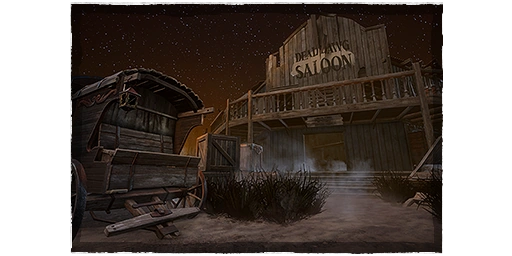 Чья карта: СтрелокГород на Диком Западе с салуном и галереей.